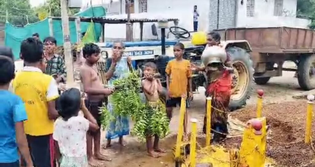 .భారత్ న్యూస్ హైదరాబాద్….వాన కాలంలో ఎండలు దంచి కొడుతున్నాయి విత్తనాలు పెట్టిన రైతులంతా వర్షాల కోసం ఎదురుచూస్తున్నారు వానలు బాగా పడాలని, పాడిపంటలు పండాలని పిల్లలందరూ, పెద్దలు కలిసి ఇంచెంచెర్వుపల్లి గ్రామంలో అన్నవాయితీగా వస్తున్న సాంప్రదాయాన్ని పాటిస్తూ కప్పతల్లి ఆడుకుంటా వరుణదేవుడు కరుణించాలని వేడుకొని భూదేవి తల్లికి కొబ్బరికాయ కొట్టి నీళ్లతో అభిషేకం చేయడం జరిగింది.