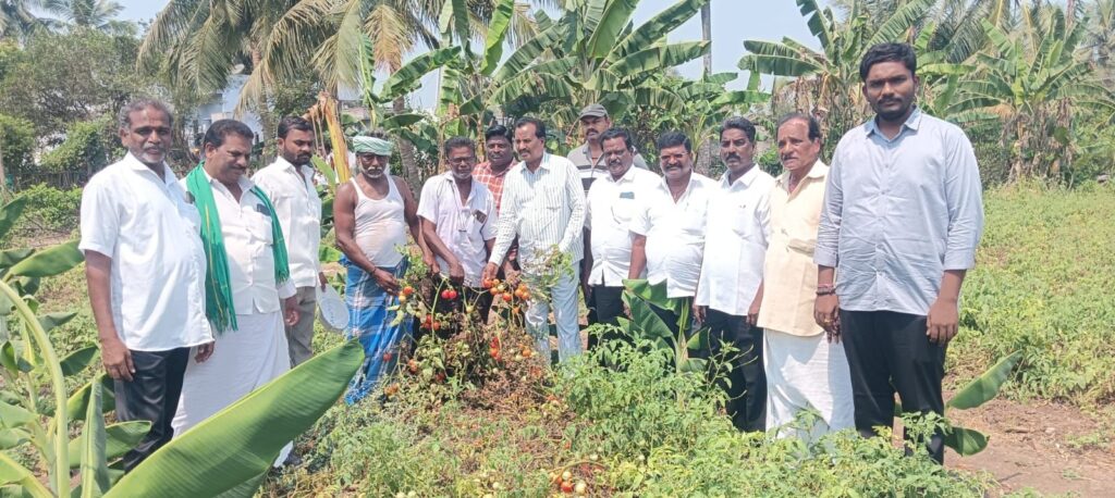 భారత్ న్యూస్ శ్రీకాకుళం…టమాట పంటను పరిశీలించి రైతులకు భరోసా కల్పించిన టిడిపి నేతలు