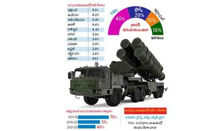 భారత్ న్యూస్ రాజమండ్రి…ఆయుధాల దిగుమతుల్లో భారత్ నం.2ఆయుధాల దిగుమతిలో ప్రపంచంలోనే భారత్ రెండో స్థానంలో ఉన్నది. 2021-25 మధ్య కాలంలో ప్రపంచంలో మొత్తం ఆయుధ దిగుమతుల్లో భారత్ వాటా 8.3 శాతం. మొదటి స్థానంలో ఉక్రెయిన్ (9.1 శాతం) ఉన్నది. స్టాక్హోమ్ ఇంటర్నేషనల్ పీస్ రిసెర్చ్ ఇన్స్టిట్యూట్(సిప్రి) తాజా నివేదికలో ఈ వివరాలు వెల్లడించింది.ఇదివరకు రష్యా నుంచి అధికంగా ఆయుధాలను కొనుగోలు చేసిన భారత్.. క్రమంగా ఫ్రాన్స్, ఇజ్రాయెల్, అమెరికా లాంటి పాశ్చాత్య దేశాలవైపు మళ్లుతున్నదని సిప్రి తెలిపింది. అయినప్పటికీ రష్యా నుంచి అధికంగా ఆయుధాలు కొనుగోలు చేస్తున్న దేశం భారతేనని వివరించింది.