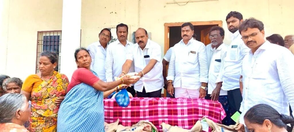 అవనిగడ్డ నియోజకవర్గం నాగాయలంక మండలం,సొర్లగొంది గ్రామంలో మొంథా తుఫాను ప్రభావంతో నష్టపోయిన మత్స్యకారులకు ఆదివారం రాష్ట్ర ప్రభుత్వం సరఫరా చేస్తున్న ఉచిత బియ్యం మరియు నిత్యావసరాలు అందజేసి,ప్రభుత్వం అన్ని విధాలా తోడుగా ఉంటుందని ధైర్యం చెప్పిన తెలుగుదేశం పార్టీ రాష్ట్ర కార్యనిర్వహక కార్యదర్శి కనపర్తి శ్రీనివాసరావు.ఈ కార్యక్రమంలో దివి మార్కెట్ కమిటీ చైర్మన్ కొల్లూరి వెంకటేశ్వరరావు, నాగాయలంక మండలం తెలుగుదేశం పార్టీ అధ్యక్షుడు మెండు లక్ష్మణరావు,పార్టీ నేతలు కొల్లాటి ధనుంజయ్,కొక్కిలిగడ్డ శ్రీనివాసరావు, నాయుడు రామయ్య, పర్చూరి దుర్గాప్రసాద్,బండే రాఘవ, మేడికొండ విజయ్,మంచాల మహేంద్ర తదితరులు పాల్గొన్నారు