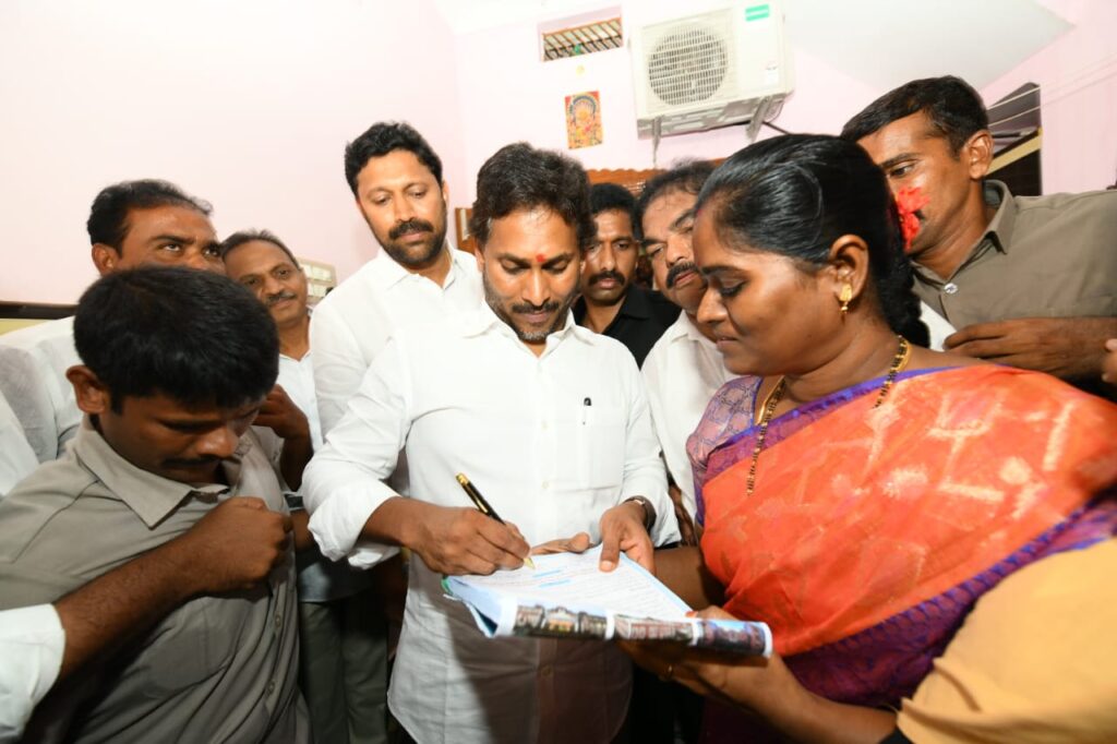 ప్రభుత్వ మెడికల్ కాలేజీల ప్రైవేటీకరణకు వ్యతిరేకంగా వైఎస్సార్సీపీ ఆధ్వర్యంలో నిర్వహిస్తున్న కోటి సంతకాల సేకరణలో భాగంగా పులివెందులలో మహేశ్వర్ రెడ్డి నివాసం వద్ద సంతకం చేసిన జగన్..
