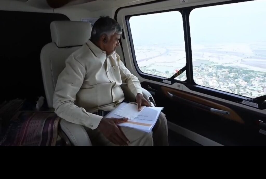 హెలికాప్టర్ ద్వారా తుఫాన్ ప్రభావిత ప్రాంతాల పరిశీలిస్తున్న సీఎం చంద్రబాబు