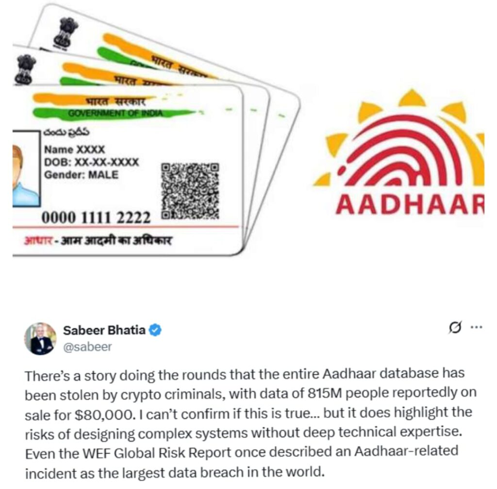 భారత పౌరుల ఆధార్ డేటాపై సంచలన ఆరోపణలు చేసిన హాట్ మెయిల్ కోఫౌండర్ సబీర్ భాటియా