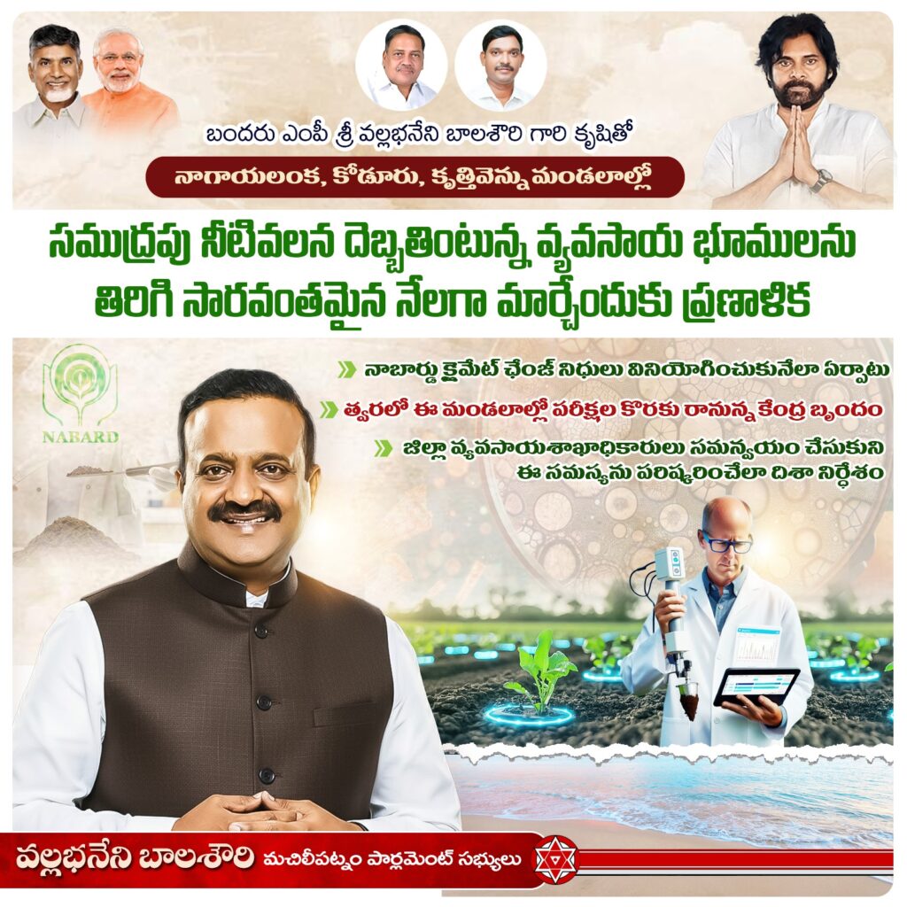 భారత్ న్యూస్ విశాఖపట్నం..మచిలీపట్టణం పార్లమెంట్ సభ్యులు శ్రీ వల్లభనేని బాలశౌరి గారి కృషితో నాగాయలంక, కోడూరు, కృత్తివెన్ను మండలాల్లో