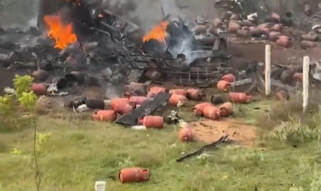 LPG సిలిండర్లు రవాణా చేస్తున్న ట్రక్కు లో మంటలు అంటుకుని భారీ పేలుడు