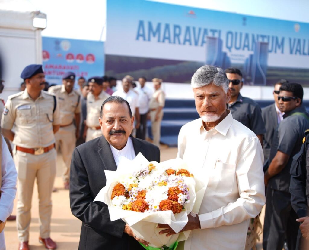 భారత్ న్యూస్ విజయవాడ…అమరావతి క్వాంటం వ్యాలీ భవనాల శంకుస్థాపన కార్యక్రమంలో ముఖ్యమంత్రి చంద్రబాబు నాయుడు గారు, కేంద్రమంత్రులు జితేంద్ర సింగ్ గారు, పెమ్మసాని చంద్రశేఖర్ గారు, ఐటీ మంత్రి నారా లోకేష్ గారు, మంత్రులు, ఎమ్మెల్యేలు, ఉన్నతాధికారులు, టీసీఎస్, ఐబీఎమ్, ఇతర సంస్థల ప్రతినిధులు పాల్గొన్నారు. అమరావతి క్వాంటం వ్యాలీ హ్యాకథాన్ 2025లో విజేతలుగా నిలిచిన బృందాలకు సర్టిఫికెట్లతో సహా నగదు బహుమతులను అందించారు.