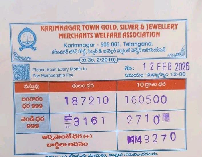 👆🏻 ఈ ధరలు కేవలం 12-02-2026 గురువారం రోజువి మాత్రమే..👆🏻