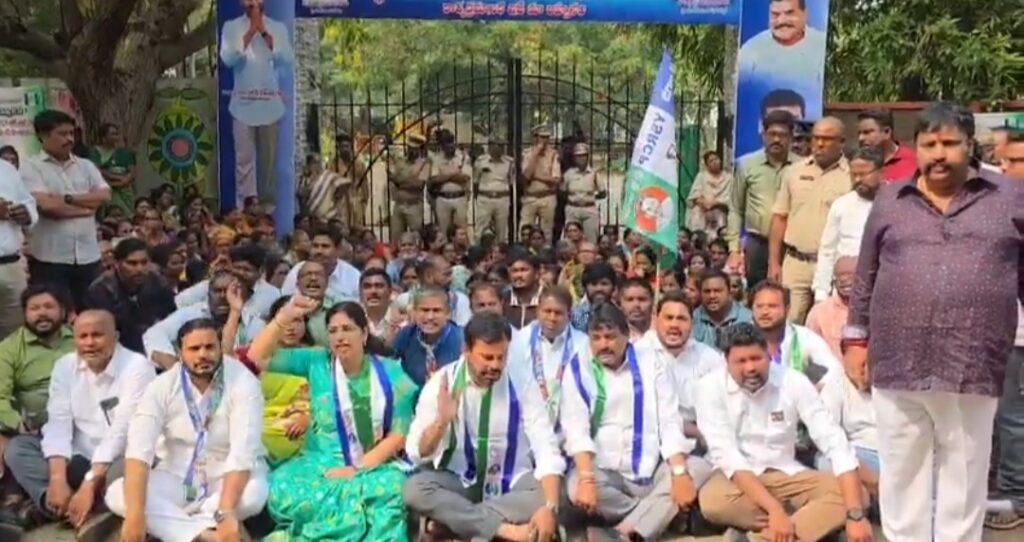 ప్రభుత్వ తీరుపై మండిపడుతున్న వైసీపీ.. గేట్ ఎదుట బైఠాయించి నిరసన తెలుపుతున్న నాయకులు