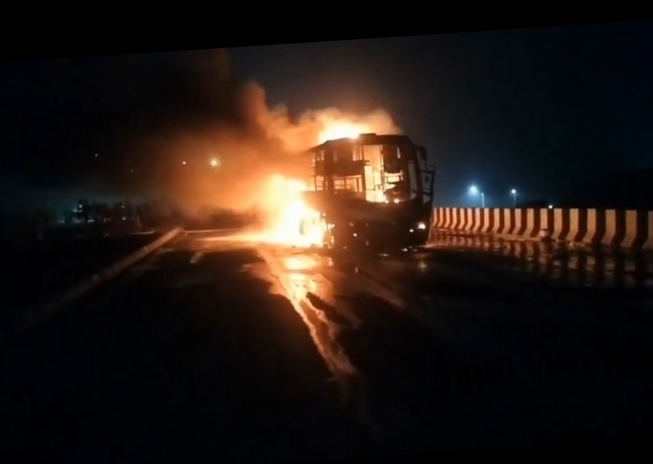 భారత్ న్యూస్ విశాఖపట్నం..మరోసారి హైవే పై ప్రైవేట్ బస్సుకు ఘోర అగ్ని ప్రమాదం.. తప్పిన పెనుప్రమాదం