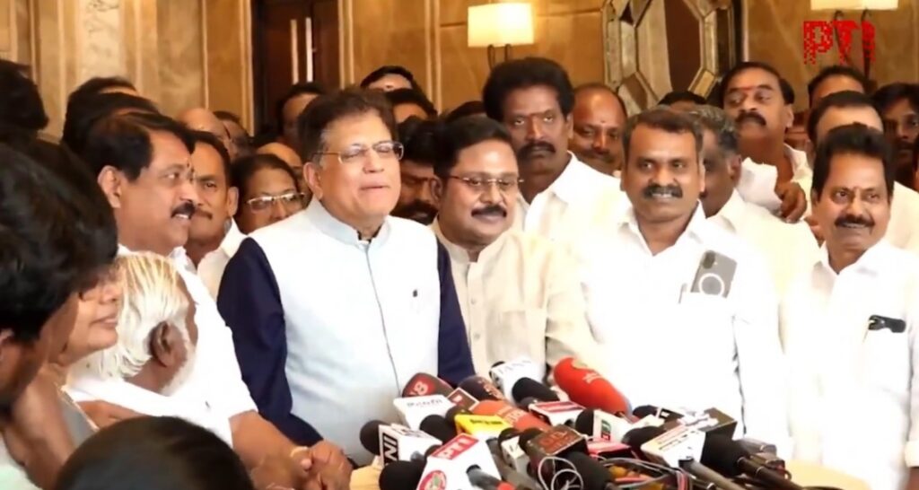 అధికారికంగా ఏడీఎంకే–బీజేపీ నేతృత్వంలోని ఎన్డీఏలో చేరిందని ధ్రువీకరించిన కేంద్ర మంత్రి పీయూష్ గోయల్
