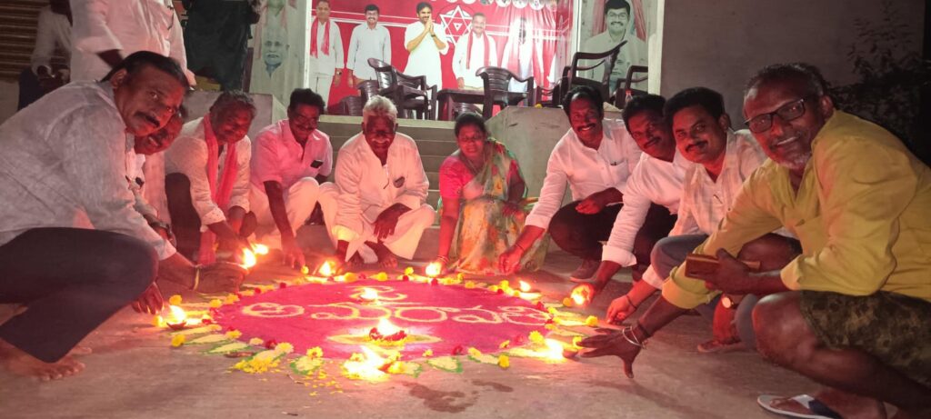 భారత్ న్యూస్ రాజమండ్రి…జనసేన పార్టీ కార్యాలయం వద్ద దీపాలు వెలిగించి ఆనంద ఉత్సాహం