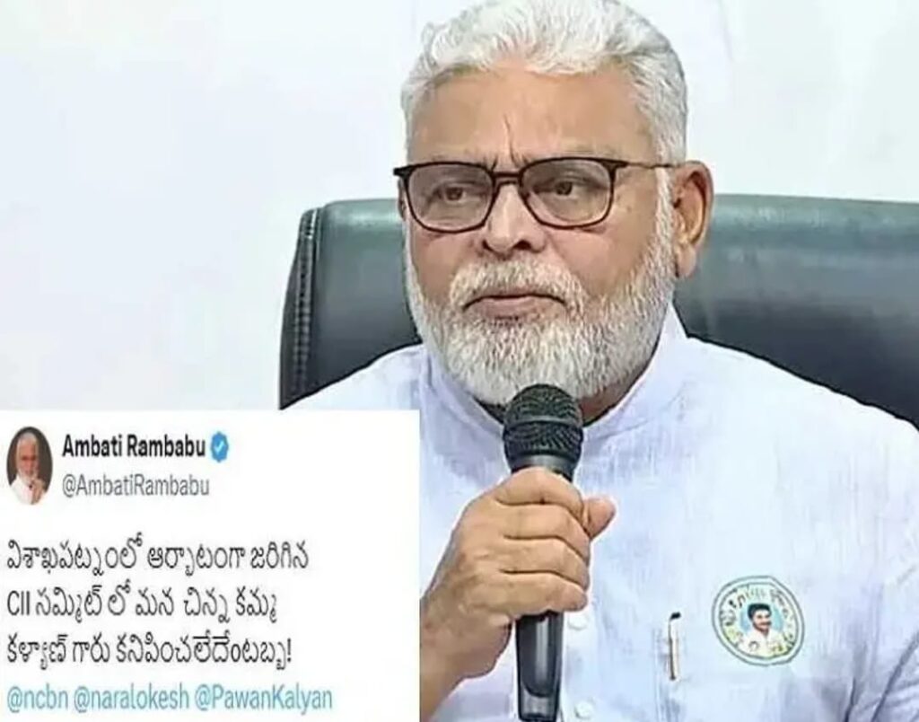 “విశాఖ CIIసమ్మిట్లో చిన్న కమ్మ కళ్యాణ్ గారు కనిపించలేదేంటబ్బ.?’ అంటూ అంబటి పోస్ట్ చేశారు.