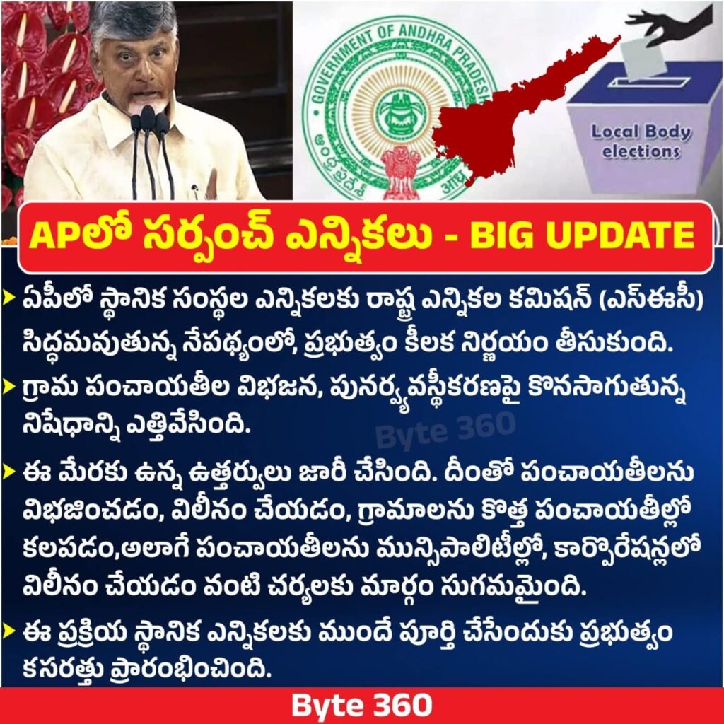 భారత్ న్యూస్ అనంతపురం,,ఏపీలో స్థానిక సంస్థల ఎన్నికలకు రాష్ట్ర ఎన్నికల కమిషన్ (ఎస్ఈసీ) సిద్ధమవుతున్న నేపథ్యంలో, ప్రభుత్వం కీలక నిర్ణయం తీసుకుంది.