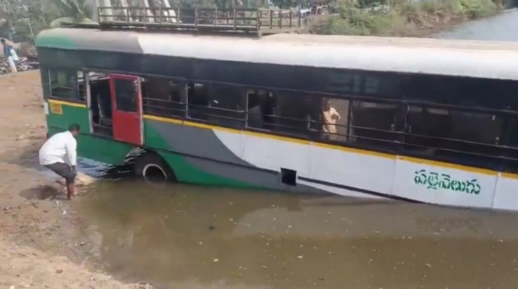 రోడ్డుపై మలుపు తిప్పే క్రమంలో ఈ ప్రమాదం చోటుచేసుకుంది.. ఘటనా సమయంలో బస్సులో సుమారు 30 మంది ప్రయాణికులు ఉన్నారు.. ఎవరికీ ఎలాంటి ప్రమాదం జరగకపోవడంతో అంతా ఊపిరి పీల్చుకున్నారు…