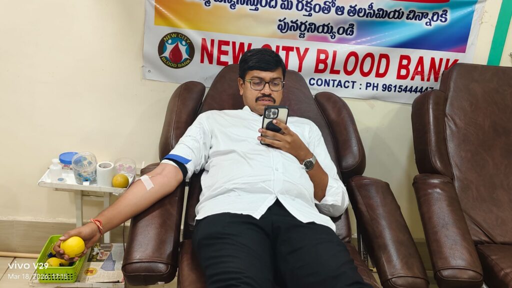 అత్యవసర స్థితిలో ఉన్న వ్యక్తి కోసం విజయవాడ వెళ్లి రక్తదానం చేసిన మండలి వెంకట్రామ్ (రాజాబాబు)