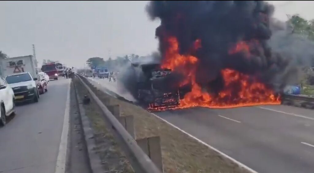 డ్రైవర్ క్యాబిన్లో షార్ట్ సర్క్యూట్ సంభవించడంతో అగ్నికీలలు ఎగిసిపడ్డాయి.
