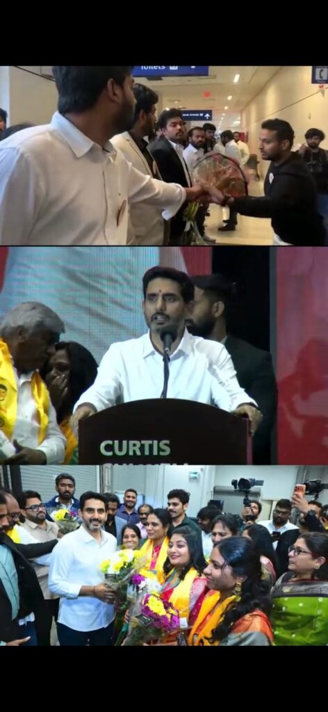అమెరికాలోని డాలస్లో తెలుగు డయాస్పోరా సమావేశంలో మంత్రి లోకేశ్ పాల్గొన్నారు. లోకేశ్కు అక్కడ తెలుగువారు పెద్ద ఎత్తున్న పాల్గొని ఘనస్వాగతం పలికారు. అభిమానులు కేరింతలు, ప్రవాసాంధ్రుల జోష్ మధ్య లోకేశ్ వారిని ఉద్దేశించి మాట్లాడారు. స్పీడ్కు ఆంధ్రప్రదేశ్ బ్రాండ్ అంబాసిడర్గా మారిందని అభివర్ణించారు. అమెరికాలో అండర్ గ్రాడ్యుయేషన్, ఎంబీయే చదవటంతో పాటు వరల్డ్ బ్యాంక్లో పనిచేసిన తనకు అమెరికాతో దాదాపు 9 ఏళ్లు అనుంబంధం ఉందని గుర్తు చేసుకున్నారు. చంద్రబాబుని 53 రోజులు పాటు అక్రమంగా బంధించినప్పుడు అమెరికాలోని ప్రవాసాంధ్రులు పెద్దఎత్తున బయటకు వచ్చి తమకు అండగా నిలిచారని లోకేశ్ ప్రశంసించారు.