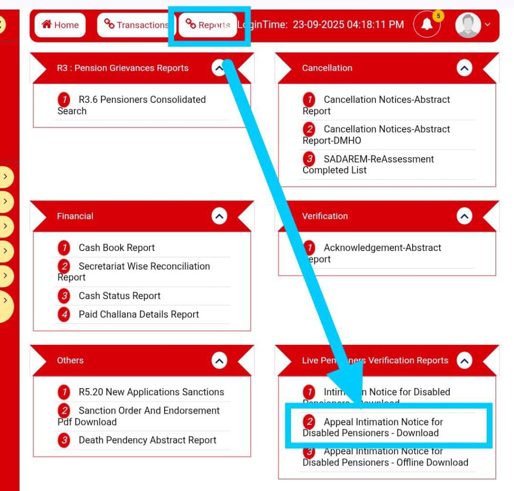 గతంలో వికలాంగుల పెన్షన్ల రద్దు/ పెన్షన్ రకం మార్పు నోటీసులు అందుకుని అప్పీల్ చేసుకున్న వారికి మరొక సారి రీ అసెస్మెంట్ నిర్వహిస్తున్నారు.