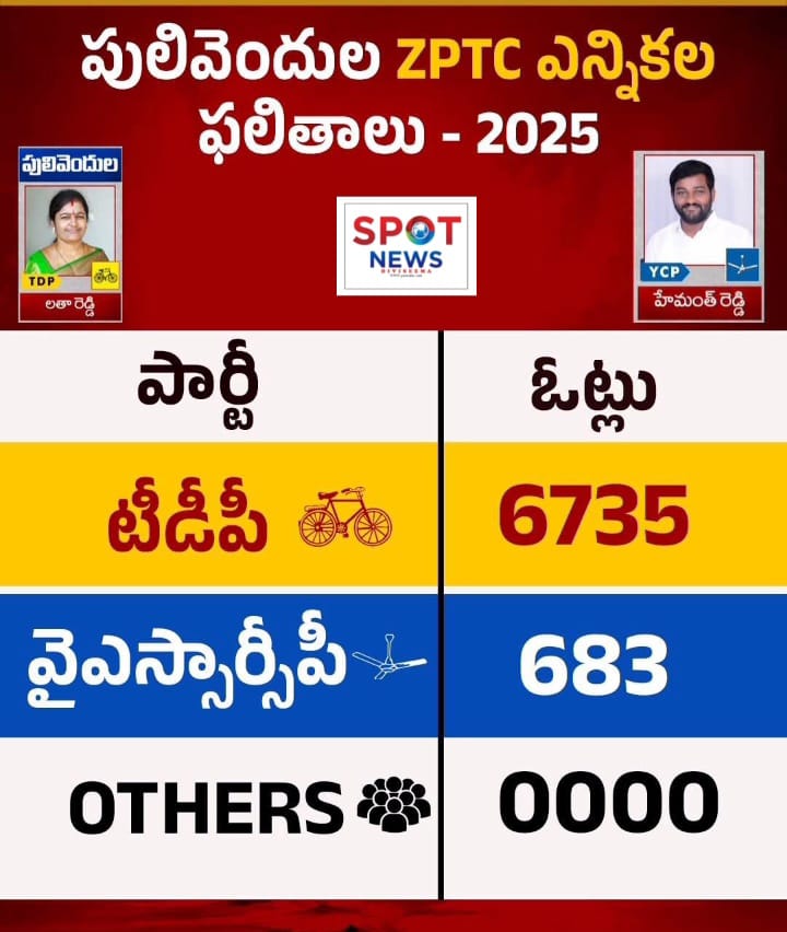 భారత్ న్యూస్ విజయవాడ…పులివెందుల ZPTC ఉపఎన్నిక ఫలితాలు..