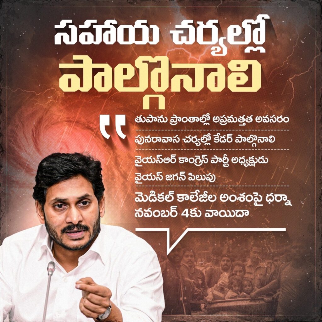 భారత్ న్యూస్ విజయవాడ…వైయస్ఆర్ సీపీ నాయకులు, కార్యకర్తల్లారా సహాయ చర్యల్లో పాల్గొనండి