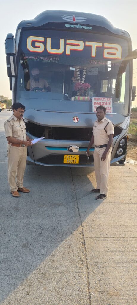 గత వారం రోజులుగా జిల్లాలో మూడు ప్రత్యేక బృందాలను ఏర్పాటు చేసి, ప్రధాన రహదారులు, చెక్పోస్టులు మరియు టోల్ గేట్ల వద్ద నిరంతర తనిఖీలు జరుగుతున్నాయి. ఈ తనిఖీల సందర్భంగా జగదల్పూర్ నుండి తిరుపతి వైపు ప్రయాణిస్తున్న ఒక కాంట్రాక్ట్ క్యారేజ్ స్లీపర్ బస్సు AIS-119 నిబంధనలను ఉల్లంఘించినట్లు గుర్తించబడింది. ముఖ్యంగా వాహన నిర్మాణం, బెర్త్ అమరిక, భద్రతా ప్రమాణాలు మరియు అత్యవసర నిష్క్రమణ మార్గాల విషయంలో గణనీయమైన లోపాలు ఉన్నందున, సంబంధిత వాహనాన్ని స్వాధీనం చేసుకోవడం జరిగింది.
