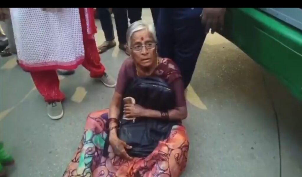 వృద్ధురాలైన తనకు కూర్చోవడానికి సీటు ఇవ్వమన్నందుకు తనపై కొందరు మహిళలు దాడి చేశారని ఆందోళనకు దిగిన వృద్ధురాలు