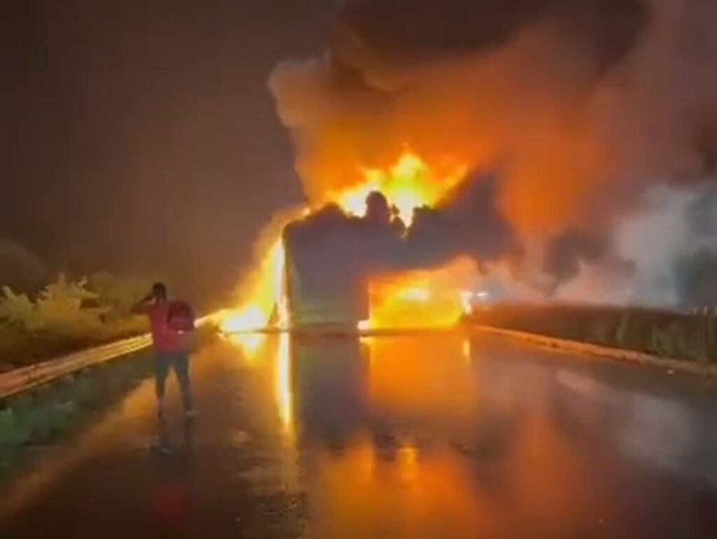 చిన్నటేకూరు వద్ద అగ్ని ప్రమాదానికి గురైన కావేరి వోల్వో బస్సు.. హైదరాబాద్ నుంచి బెంగళూరు వెళ్తున్న బస్సు బైకును ఢీకొట్టడంతో బస్సు ముందు భాగంలో మంటలు చెలరేగాయి.. క్షణాల్లో బస్సు పూర్తిగా దగ్ధం అయ్యింది.. 12 మంది ఎమర్జెన్సీ డోర్ ద్వారా బయటకు దూకారు… బస్సులో మొత్తం 40 మందికి పైగా ప్రయాణికులు ఉండగా.. మిగతావారు మరణించినట్టు సమాచారం