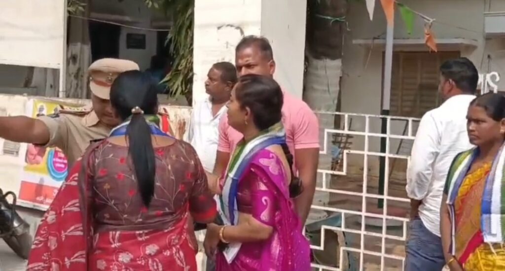 వైసీపీ చైర్మన్ పోలు పవన్ మై నీ పంచాయతీ కార్యాలయంలోకి వెళ్ళనివ్వకుండా గేటు దగ్గరే అడ్డుకున్న పోలీసులు