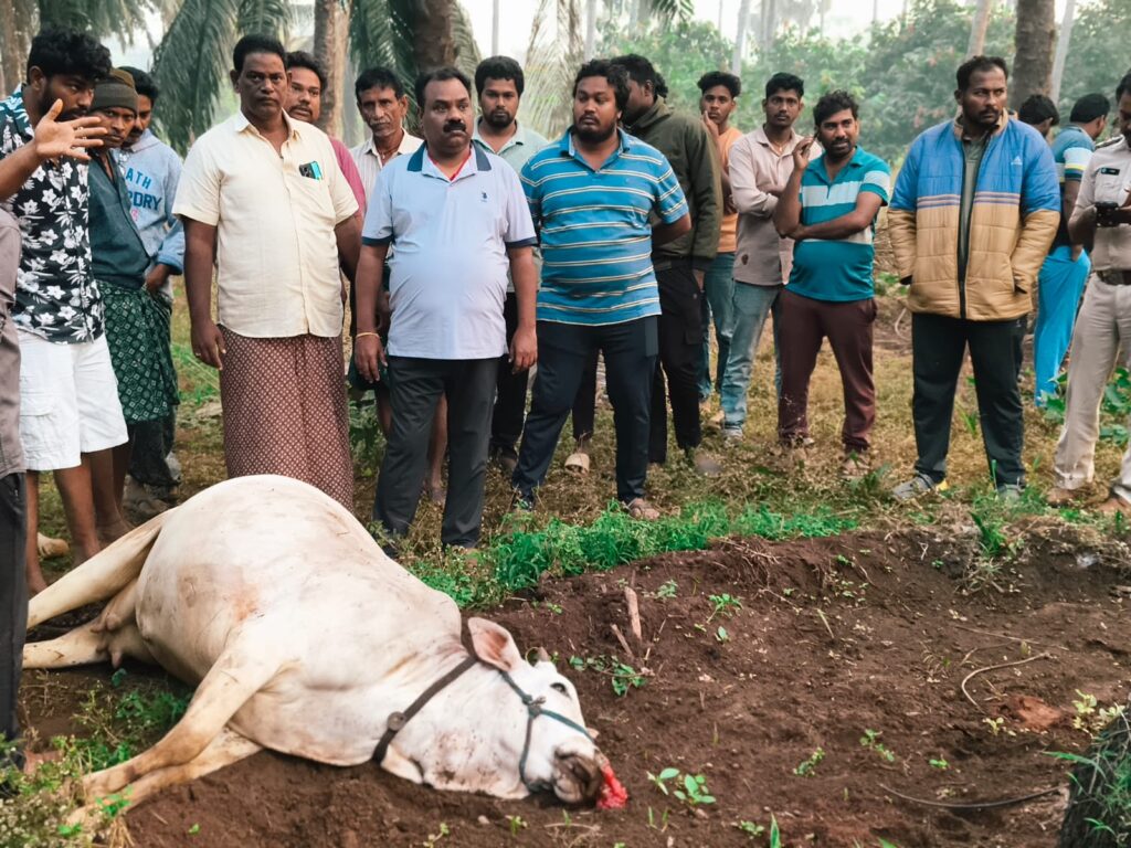 In Bhupalapatnam village of Rajanagaram constituency in East Godavari district of Andhra Pradesh, a tiger attacked and killed cattle early this morning.