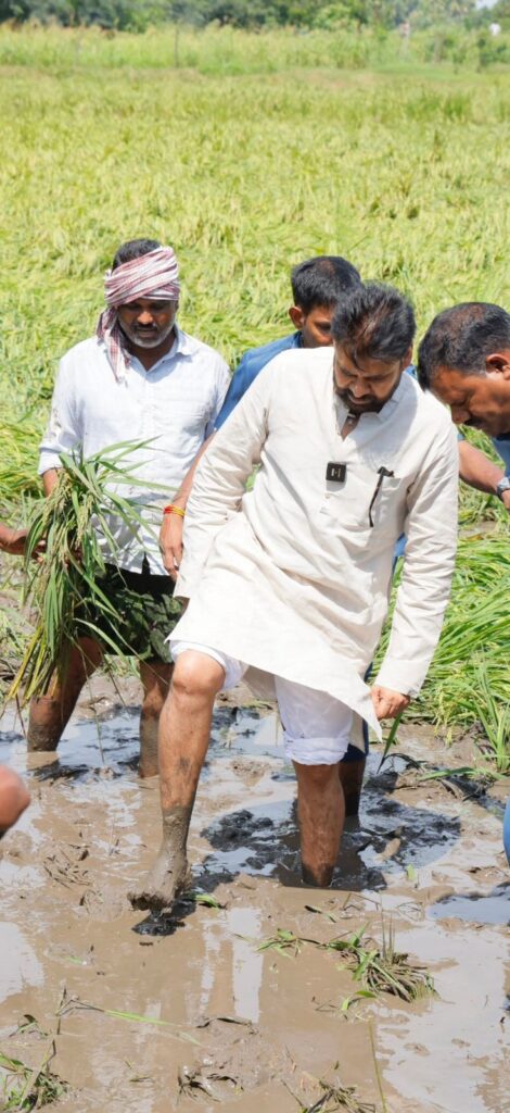 He assured them that we are in their distress. On Thursday, in the cyclone-affected areas of Krishna district, the state’s Deputy Chief Minister Pawan Kalyan went to the paddy fields in Krishnapuram village to inspect the cyclone-affected areas. He went down into the mud and asked the farmers about the details of the crops that had fallen.