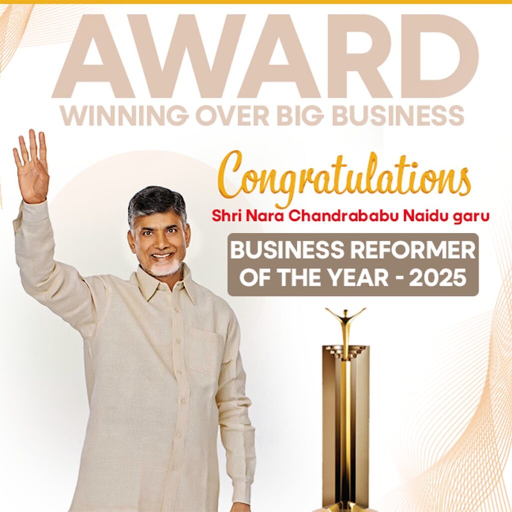 Chandrababu Naidu, who has been implementing many reforms for the development of the state, will be felicitated with the prestigious ‘Business Reformer of the Year 2025’ award announced by ‘The Economic Times’ in Mumbai tomorrow.