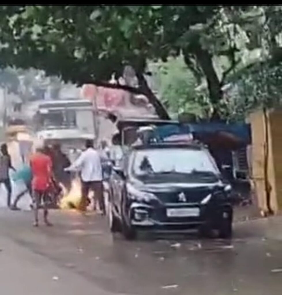 In broad daylight on the main road in Visakhapatnam.. while everyone was watching.. the incident of a man setting himself on fire has created a stir locally. This incident took place in Arilova on Friday (August 29) morning.