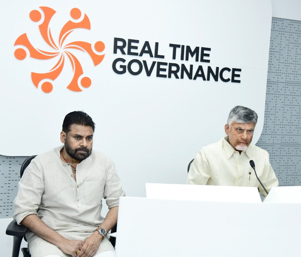 CM Chandrababu reviews the impact of Cyclone Montha with Deputy CM Pawan Kalyan