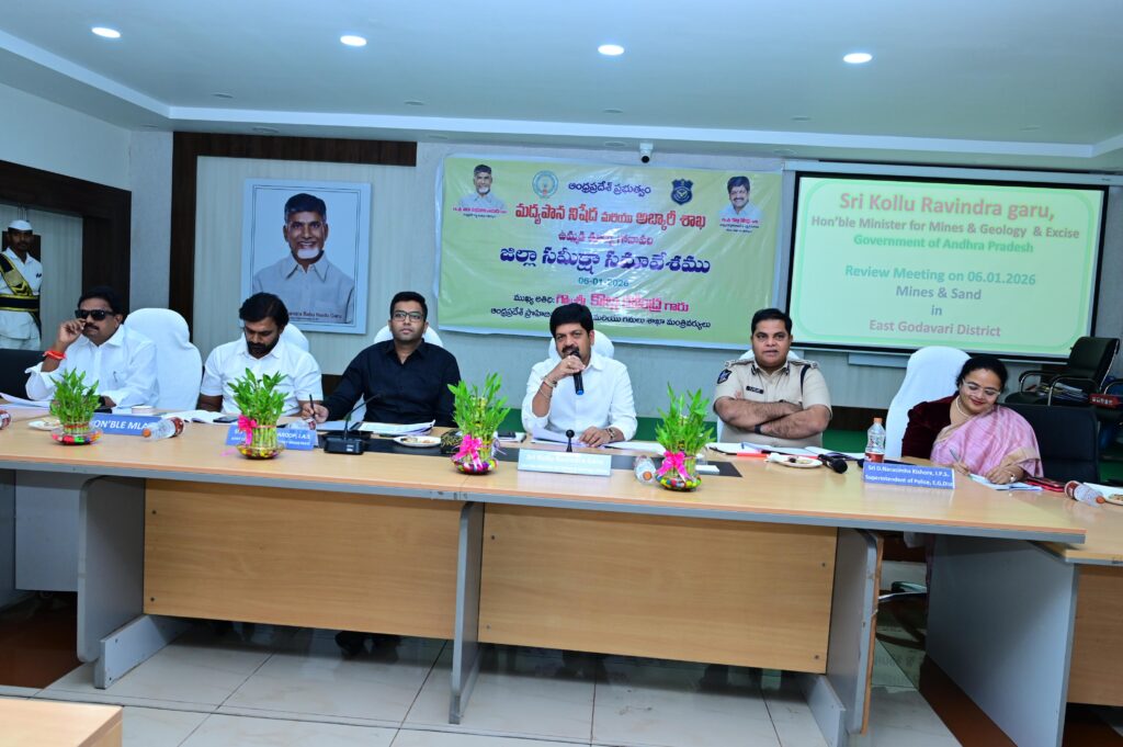 Review meeting held by Mines Minister Kollu Ravindra at the Rajamahendravaram Collectorate.