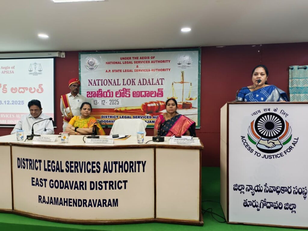 She stated that a total of 46 benches have been set up in Rajahmundry, in the undivided East Godavari district, to provide legal services in today’s fourth National Lok Adalat.