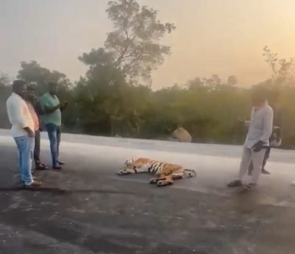 In the Macherla constituency of Palnadu district, Andhra Pradesh, a tiger died after being hit by an unidentified vehicle.