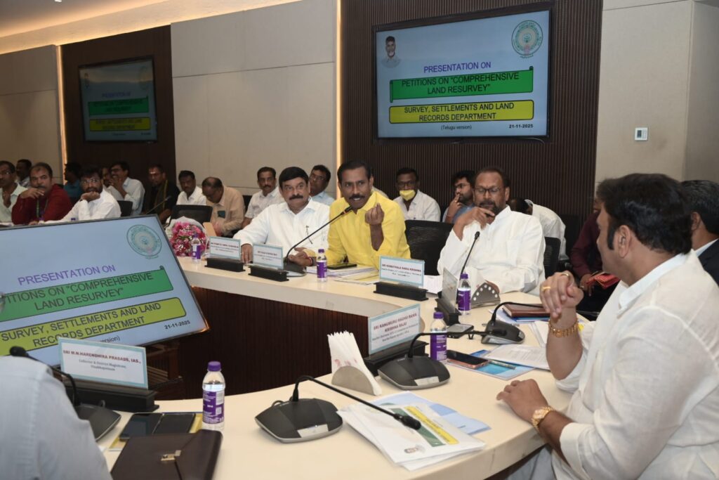 Palla Srinivas Rao participated in a meeting of the Petitions Committee on Comprehensive Land Survey held at the Visakhapatnam Collectorate, chaired by Deputy Speaker Raghu Rama Krishna Raju. Srinivas urged the authorities to urgently respond to the land-related difficulties being faced by the administration and the citizens of the state for months.