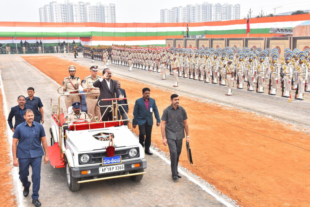 Guntur District Collector A. Thameem Ansari, SP Vakul Jindal, Joint Collector Ashutosh Srivastava, police officers, senior officials from various departments, district officials, and others participated in the parade’s full dress rehearsals.