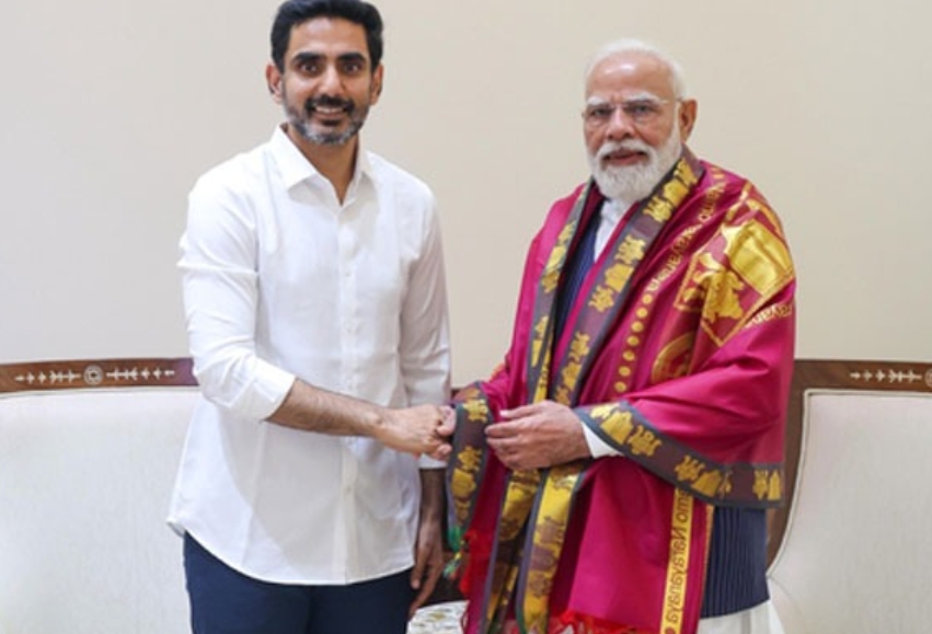 Nara Lokesh thanked Prime Minister Narendra Modi and other central government leaders in Delhi today for passing the bill in both the houses of the state, giving legal status to Amaravati as the sole capital of AP. He met the Prime Minister along with NDA MPs in Delhi.