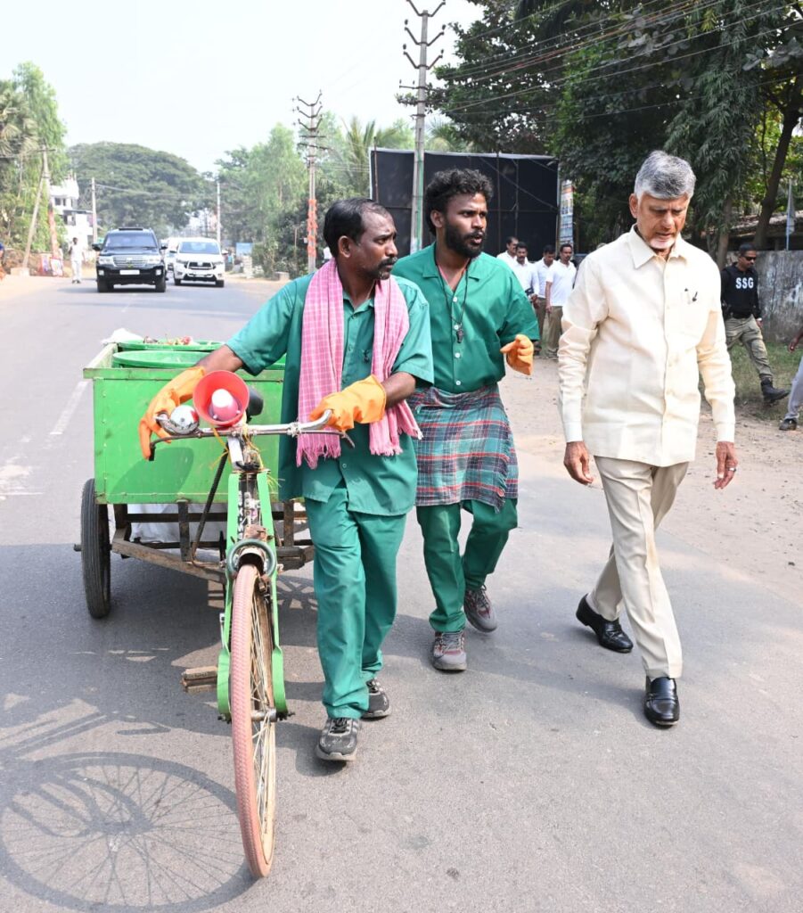 Not only should the surroundings be clean, but our thoughts should also be pure. The sanitation workers are the ones leading this cleanliness movement from the front… We must express our gratitude to them. We have introduced the Circular Economy Policy and undertaken recycling. Workers are collecting garbage from their homes. They are separating wet and dry waste. People are providing the waste separately, said Andhra Pradesh Chief Minister Chandrababu Naidu.