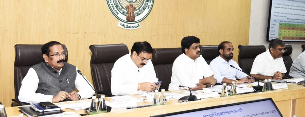 State Finance Minister Payyavula Keshav, State Civil Supplies Minister Nadendla Manohar, State Medical and Health Minister Satya Kumar Yadav, Chief Secretary to the Government K. Vijayanand, Special Chief Secretary to the Services Department SS Rawat, Principal Secretary to the Finance Department Piyush Kumar, Principal Secretary to the PR and RD Shashi Bhushan Kumar, RTC MD Dwaraka Tirumala Rao, IT Secretary K. Bhaskar, Secretary Vinay Chand, Medical and Health Commissioner Veerapandian and other officials participated in this meeting.