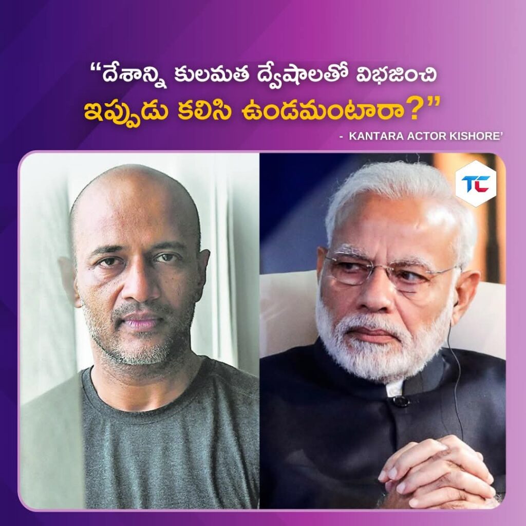 భారత్ న్యూస్ శ్రీకాకుళం….‘కాంతారా’ చిత్రంతో గుర్తింపు పొందిన నటుడు కిషోర్ చేసిన వ్యాఖ్యలు ప్రస్తుతం దేశవ్యాప్తంగా చర్చకు దారితీస్తున్నాయి. దేశ ఐక్యతపై ప్రధాని నరేంద్ర మోదీ చేసిన పిలుపును ఉద్దేశిస్తూ, కిషోర్ సోషల్ మీడియాలో తన అభిప్రాయాన్ని ఘాటుగా వ్యక్తం చేశారు.