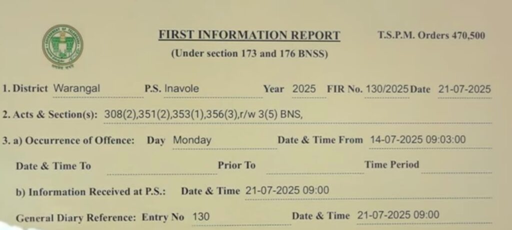 ఐనవోలు తహసిల్దార్ పై ఆదారాలు లేని వార్తలు రాసి 2 లక్షల రూపాయలు డిమాండ్ చేయడంతో పోలీసులకు పిర్యాదు చేసిన తహసీల్దార్ విక్రమ్ కుమార్,పోలీసులు విచారణ జరిపి దామెర రవీందర్, దామెర రాజేందర్ (జననిర్ణయం ఆన్లైన్ పేపర్) లపై కేసు (ఎఫ్ఐఆర్ 130/2025) నమోదు చేసి రిమాండ్ తరలించిన ఐనవోలు పోలీసులు. ఆన్లైన్ పేపర్ల పేరుతో అధికారులను ,ప్రజలను ఇబ్బందులకు గురిచేసి డబ్బులు డిమాండ్ చేస్తూ బ్లాక్ మెయిల్ చేసే వారిపై పిర్యాదు చేయాలని పోలీసులు సూచించారు…