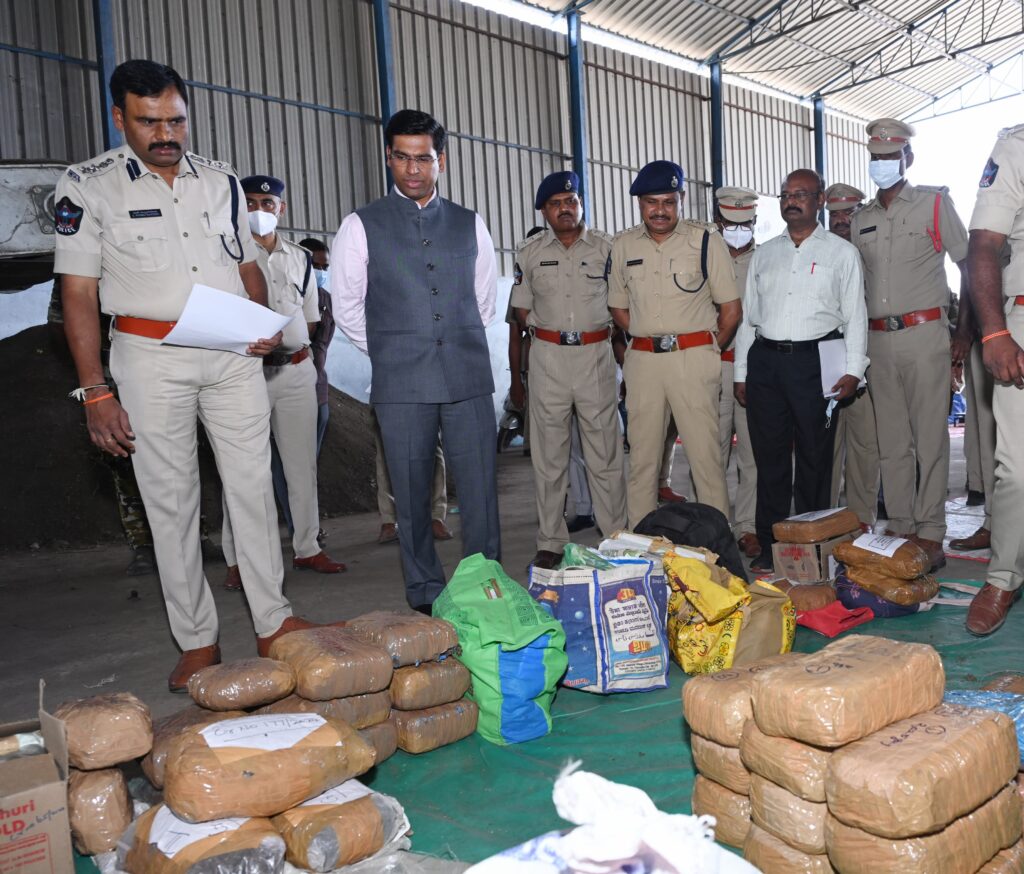 జిల్లా కలెక్టర్ వెంకటేశ్వర్ జిల్లా ఎస్పీ ఎల్ సుబ్బరాయుడు ఆధ్వర్యంలో గంజాయిని కాల్చివేత.