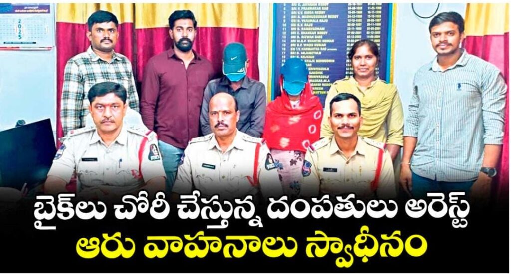 ..భారత్ న్యూస్ హైదరాబాద్….గవర్నమెంట్ హాస్పిటళ్లు టార్గెట్గా వరుస బైక్ చోరీలకు పాల్పడుతున్న దంపతులను చిలకలగూడ పోలీసులు అరెస్ట్చేశారు. ఆలేరు మండలానికి చెందిన కోటగిరి వినోద్, పావని దంపతులు. వీరికి మద్యం, సిగరెట్ అలవాటు ఉంది. సులువుగా డబ్బులు సంపాదించాలనుకొని ప్లాన్ వేశారు.