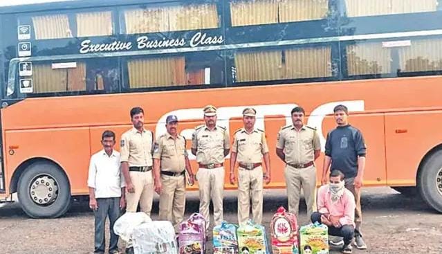 తెలంగాణ – కర్ణాటక అంతరాష్ట్ర సరిహద్దు చెక్‌పోస్టు సంగారెడ్డి జిల్లా మడ్గి గ్రామ శివారు ఎక్సైజ్ అధికారులు అక్రమంగా తరలిస్తున్న 46 కిలోల నైట్రోజెఫమ్ మత్తు పదార్థాలను గోవా నుండి హైదరాబాద్ వస్తున్న ట్రావెల్స్ బస్సులో స్వాధీనం చేసుకున్నారు. గుల్బర్గాలో ఓ వ్యక్తి బస్సులో వేశాడని వాటిని హైదరాబాద్‌లో తీసుకుంటారని డ్రైవర్‌ పోలీసులకు తెలిపారు. వీటి విలువ రూ. 73,12,50 ఉంటుందని అంచనా. డ్రైవర్‌ను అరెస్టు చేసి బస్సును స్వాధీనం చేసుకున్నారు…