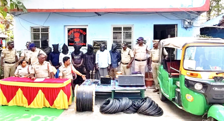 పాకాల పోలీస్ స్టేషన్ పరిధిలో భారీ కాపర్ కేబుల్ వైర్ల దొంగతనాల గ్యాంగ్ అరెస్టు:చోరీ సొత్తు స్వాధీనం