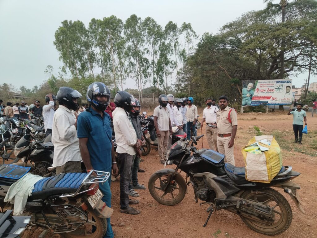 👉 ఈ తనిఖీ లలో హెల్మెట్ ధరించకుండా ద్విచక్ర వాహనాలను నడుపుతున్నటువంటి వారిని గుర్తించి, ఆయా వాహన యజమాను లకు జరిమానాలు విధించకుండా వారి చేత అప్పటికప్పుడు 38 మంది ద్విచక్ర వాహనదారులతో హెల్మెట్లను కొనుగోలు చేయించి హెల్మెట్ వలన కలిగే ఎటువంటి ఉపయోగాలను గురించి వారికి తెలియజేస్తూ ఈ మధ్యకాలంలో రహదారి ప్రమాదాలలో ఎక్కువగా యువత ద్విచక్ర వాహనాలతో ప్రయాణం చేస్తున్న వారు ఎక్కువగా మరణాలకు గురవుతున్నట్లు, హెల్మెట్ ధరించడం వలన సురక్షిత గమ్యస్థానాలకు చేరుకుంటారని హితవు పలికిన జంగారెడ్డిగూడెం ట్రాఫిక్ ఎస్ఐ.