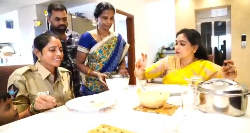 మంత్రి అనిత కానిస్టేబుల్కు, భర్తకు బట్టలు ఇచ్చి సత్కరించారు మరియు వారితో కలిసి భోజనం చేశారు.