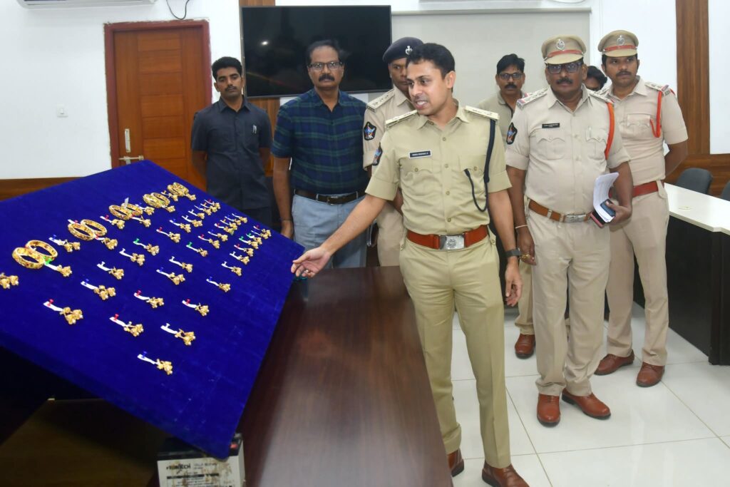 భారత్ న్యూస్ రాజమండ్రి…బంగారం దొంగతనాన్ని చేదించిన కాకినాడ జిల్లా పోలీసులు – ₹60 లక్షల విలువైన 624 గ్రాముల బంగారు ఆభరణాలు స్వాధీనం.